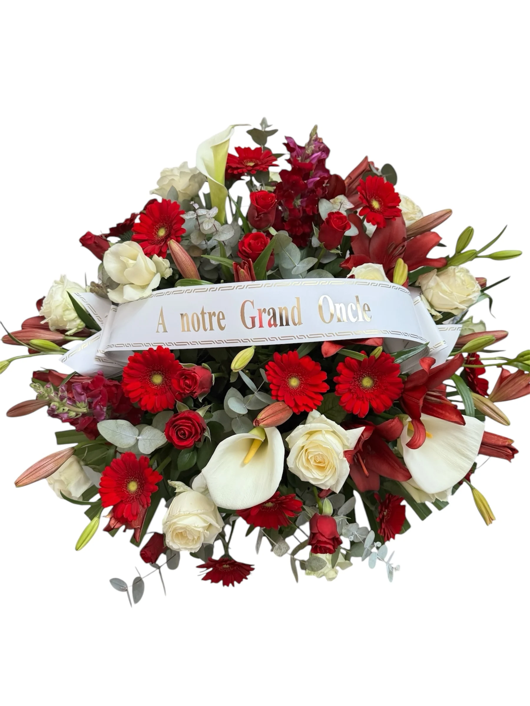 Choix des fleurs spécifiques selon les goûts du défunt Couleurs sur-mesure pour refléter sa personnalité Formes particulières selon vos souhaits Éléments symboliques intégrés dans l'arrangement